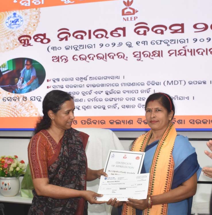 ଏଥିଷରେ ମୁଖ୍ୟ ଅତିଥ୍ୟ ଭାବେ ଯୋଗଦେଇ ସଚିବ ତଥା କମିଶନର ଅଶ୍ଵଥି ଏସ କହିଲେ, କୁଷ୍ଠ ରୋଗ ଯେତେ ଶୀଘ୍ର ଚିହ୍ନଟ ହେବ, ସେତେ ଶୀଘ୍ର ନିରାକରଣ ହୋଇପାରିବ। । ଏହି ଅବସରରେ ବହୁ କୁଷ୍ଠ ରୋଗୀଙ୍କୁ ଉତ୍ତମ ଚିକିତ୍ସା ଓ ସେବା ମାଧ୍ୟମରେ ଭଲ କରିଥିବା ଶ୍ରୀପୁରା ପ୍ରାଥମିକ ସ୍ୱାସ୍ଥ୍ୟ କେନ୍ଦ୍ର ର ଆୟୁଷ ମେଡିକାଲ ଅଫିସର ଡାକ୍ତର ଦିବ୍ୟେନ୍ଦୁ କୁମାର ସାହୁ , ଦାନାଗାଡି ଗୋଷ୍ଠୀ ସ୍ୱାସ୍ଥ୍ୟ କେନ୍ଦ୍ର ର ମେଡିକାଲ ଅଫିସର ଡାକ୍ତର ମନୀଷ କୁମାର ସାହୁ , ଖଜୁରିଆକଟା ଗୋଷ୍ଠୀ ସ୍ୱାସ୍ଥ୍ୟ କେନ୍ଦ୍ରର ଆୟୁଷ ମେଡିକାଲ ଅଫିସର ଡାକ୍ତର ତପସ୍ଵିନୀ ମିଶ୍ରଙ୍କୁ ପ୍ରଶଂସାପତ୍ର ସହ ଅର୍ଥରାଶିରେ ସମ୍ମାନିତ କରାଯାଇଛି । ସେହିପରି ଆଶାକର୍ମୀ ପ୍ରତିମା ମଲ୍ଲିକ , ରଜନୀ ଭୋଇ , ମଞ୍ଜୁଲତା ଲେଙ୍କା, ୱାଇ ମଞ୍ଜୁ , ମନୋରମା ମଲ୍ଲିକଙ୍କୁ ନିଜ କ୍ଷେତ୍ର ରେ ଭଲ ପ୍ରଦର୍ଶନ ନିମନ୍ତେ ସମ୍ମାନିତ କରାଯାଇଛି ।