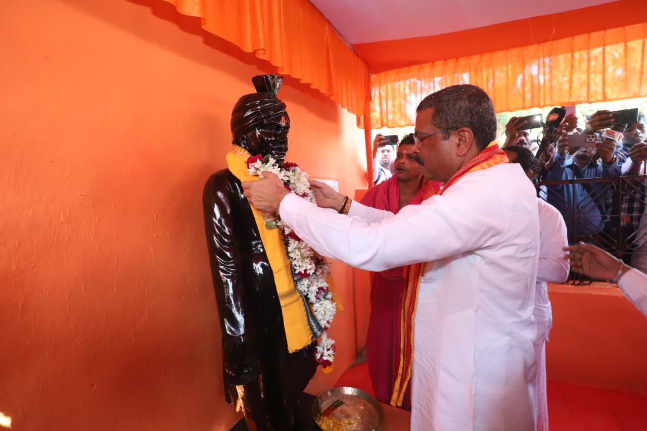 During his visit to Gohiratikiri in Dhamnagar, Shri Pradhan paid homage to the statue of Birbar Mukunda Dev, the last independent king of Odisha.
