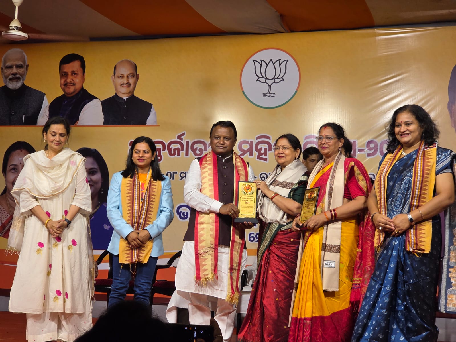 Additionally, MasterChef contestants Anju Ojha and Manju Pradhan were felicitated for their achievements. The event was attended by national social media coordinator Sujata Padhi, singer Susmita Das, and numerous Mahila Morcha members.