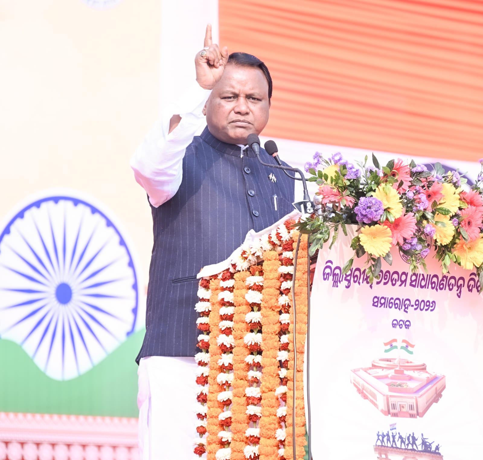 Cuttack: Chief Minister Shri Mohan Charan Majhi graced the district-level 77th Republic Day celebrations at the historic Barabati Stadium on Monday. The Chief Minister unfurled the National Flag and received the ceremonial salute from a parade comprising 47 contingents and nine government tableaux showcasing the state’s developmental achievements.