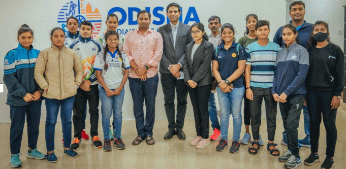 Minister for Sports and Youth Services, Tusharkanti Behera, felicitated the athletes with...