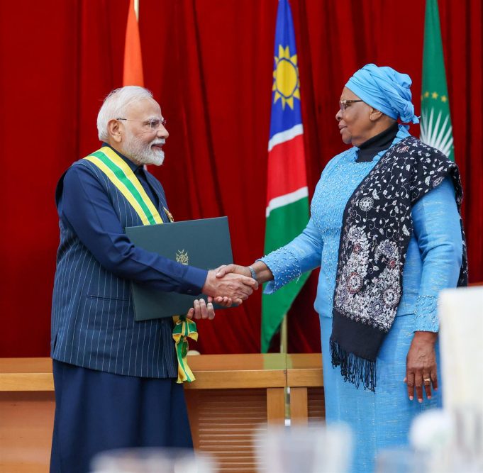 New Delhi: Prime Minister Shri Narendra Modi today received Namibia's highest civilian honor, the "Order of the Most Ancient Welwitschia Mirabilis," from President H.E. Netumbo Nandi-Ndaitwah during a landmark State Visit. This marks a significant moment in the bilateral...