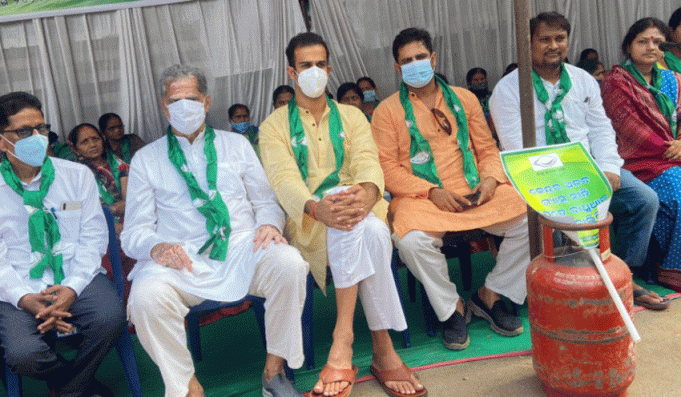 Balangir: Continuing its fight against the NDA Government, Governing Biju Janata Dal (BJD) on Monday launched dharna cum demonstration against price hike in LPG gas cylinders in Balangir District.