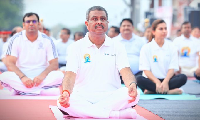 Sambalpur: Union Minister for Education, Dharmendra Pradhan, today led a massive Yoga celebration in Sambalpur on the occasion of the 11th International Yoga Day (IDY).