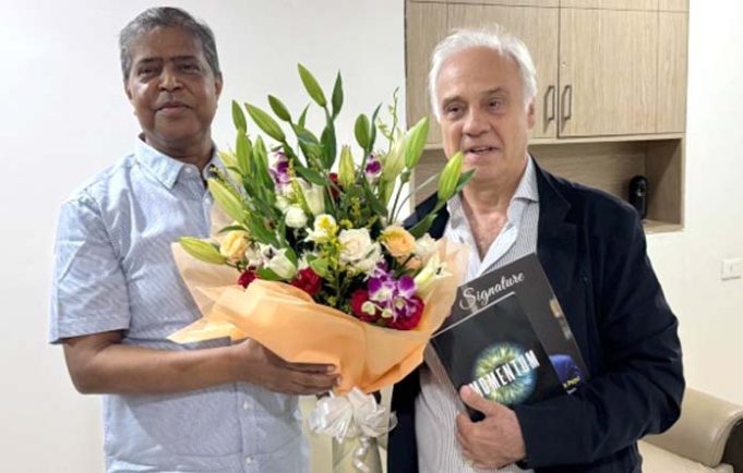 Bhubaneswar: The Ambassador of Kingdom of Spain to India, H.E. Juan Antonio March Pujol, paid a courtesy visit to Professor (Dr.) Manojranjan Nayak, Founder President of Siksha 'O' Anusandhan (SOA) University, on Friday.