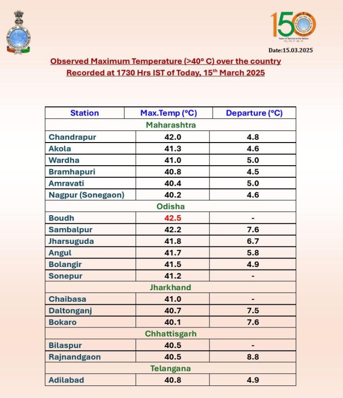 Bhubaneswar: Boudh district in Western Odisha on 15 March logged the highest temperature in the country at 42.5 degree Celsius, the India Meteorological Department (IMD) reported.According to the IMD office, Boudh was followed by Sambalpur (42.2 degree Celsius) and...