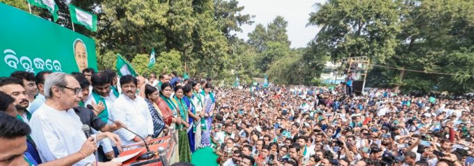Holding posters and banners, thousands of BJD workers assembled here at Lower PMG Square...