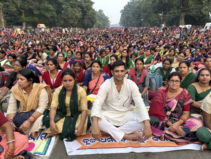 Bhubaneswar:Expressing his solidarity with the protesting supporting staff of Mission Shakti, senior BJD leader and MLA Kalikesh Narayan Singh Deo today joined their protest here at Mahatma Gandhi Marg.