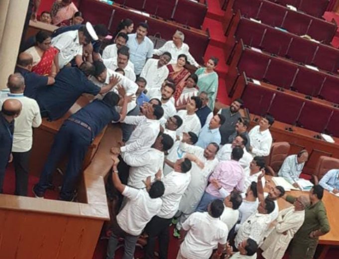 ଭୁବନେଶ୍ୱର: ଇଡି ଓ ଗଞ୍ଜାମ ମଦମୃତ୍ୟୁ କୁ ନେଇ ବିରୋଧୀ କଂଗ୍ରେସ ଓ ବିଜେଡି ସଭ୍ୟମାନେ ଗୃହ ମଝିରେ ହଟ୍ଟଗୋଳ କରିବା ରୁ ଆଜି ଦ୍ୱିତୀୟ ପର୍ଯ୍ୟାୟ ବଜେଟ୍ ଅଧିବେଶନର ତୃତୀୟ ଦିନରେ ବିଧାନସଭା ଏକ ପ୍ରକାର ଅଚଳ ରହିଛି