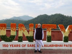 Kevadia: Prime Minister Shri Narendra Modi today paid floral tributes to Sardar Vallabhbhai Patel at the 'Statue of Unity' in Kevadia.