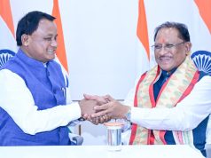 Bhubaneswar: Chhattisgarh Chief Minister Bishnu Dev Sai, during his visit to Odisha, paid a courtesy call on Chief Minister Mohan Charan Majhi at Lok...