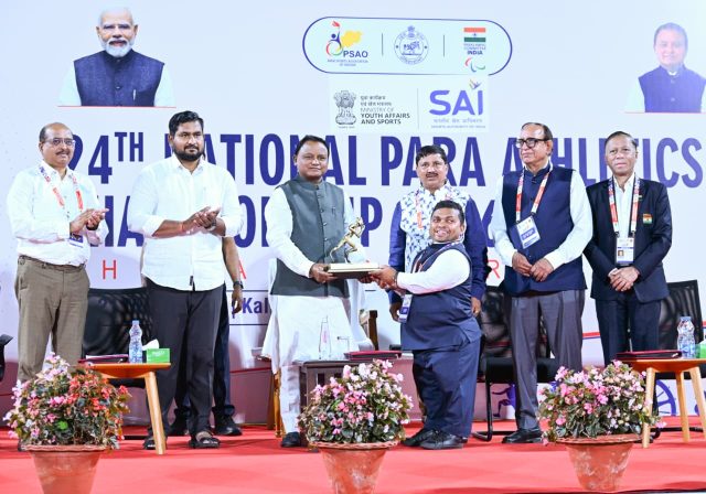 Bhubaneswar: Chief Minister Mohan Charan Majhi graced the closing ceremony of the 24th National Para Athletics Championship held today at the Kalinga Stadium in Bhubaneswar. Minister of Sports and Youth Affairs Shri Suryabanshi Suraj, Secretary Sports, Shri Sachin R. Jadhav, Paralympic Committee General Secretary Shri Jaywant G.H., Para Athletics President Shri Satyanarayan, and Para Sports Association of Odisha Chairman...