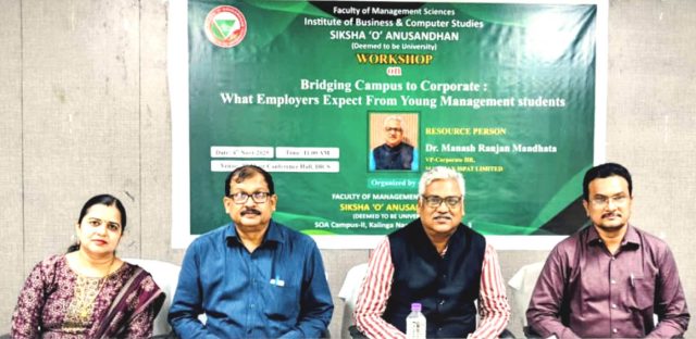 Bhubaneswar: In a bid to familiarize students of management sciences with the needs of the corporate world and its expectations from young graduates, a one-day workshop was organized by Institute of Business and Computer Studies (IBCS), faculty of management sciences of the SOA Deemed to be University here on Tuesday. The event, titled ‘Bridging Campus to Corporate: What Employers Expect...