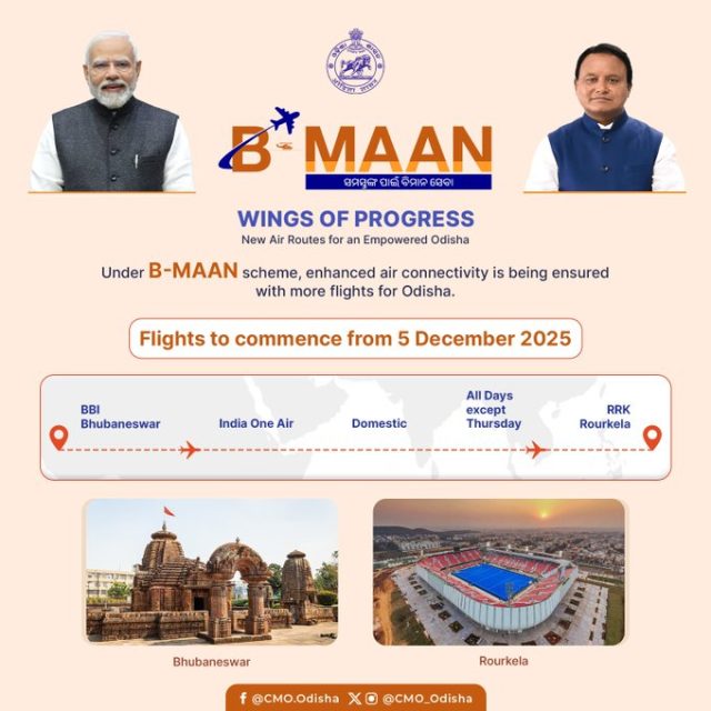 Bhubaneswar: Direct flight operations between Bhubaneswar and Rourkela are set to commence from December 5, 2025, marking a new chapter in seamless regional air connectivity for Odisha. The announcement was made by Chief Minister Shri Mohan Charan Majhi on his X platform, where he stated, "Odisha soars higher with #BMAAN! Direct Bhubaneswar-Rourkela flights will take off from 5 December 2025,...