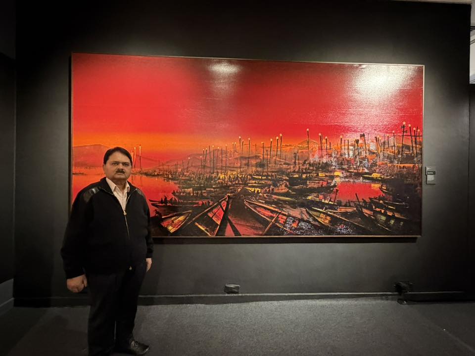 A vibrant painting on Varanasi Ghat by Padma Shri Sri Paresh Maity.