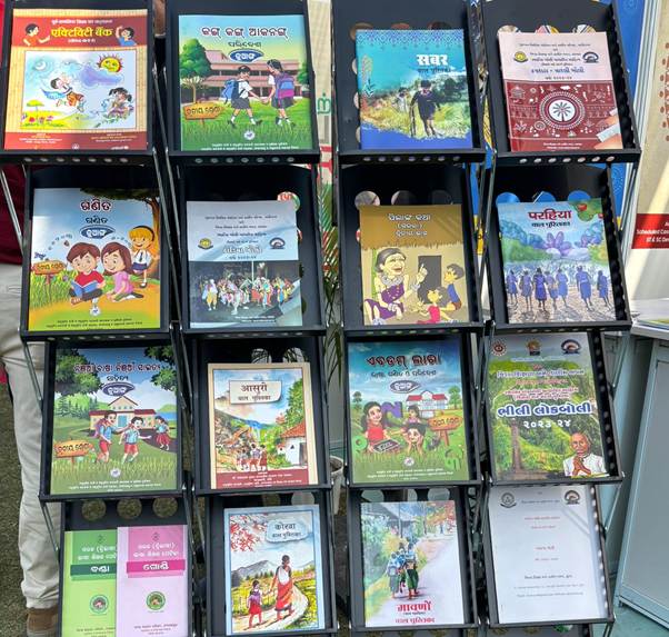 As part of the exhibition, MoTA set up an exclusive stall featuring tribal language publications from the Tribal Research Institutes (TRIs) of Jharkhand, Odisha, and Gujarat. The display included dictionaries, primers, storybooks, and research documents curated to showcase the unique linguistic identity and oral traditions of tribal communities across these states.