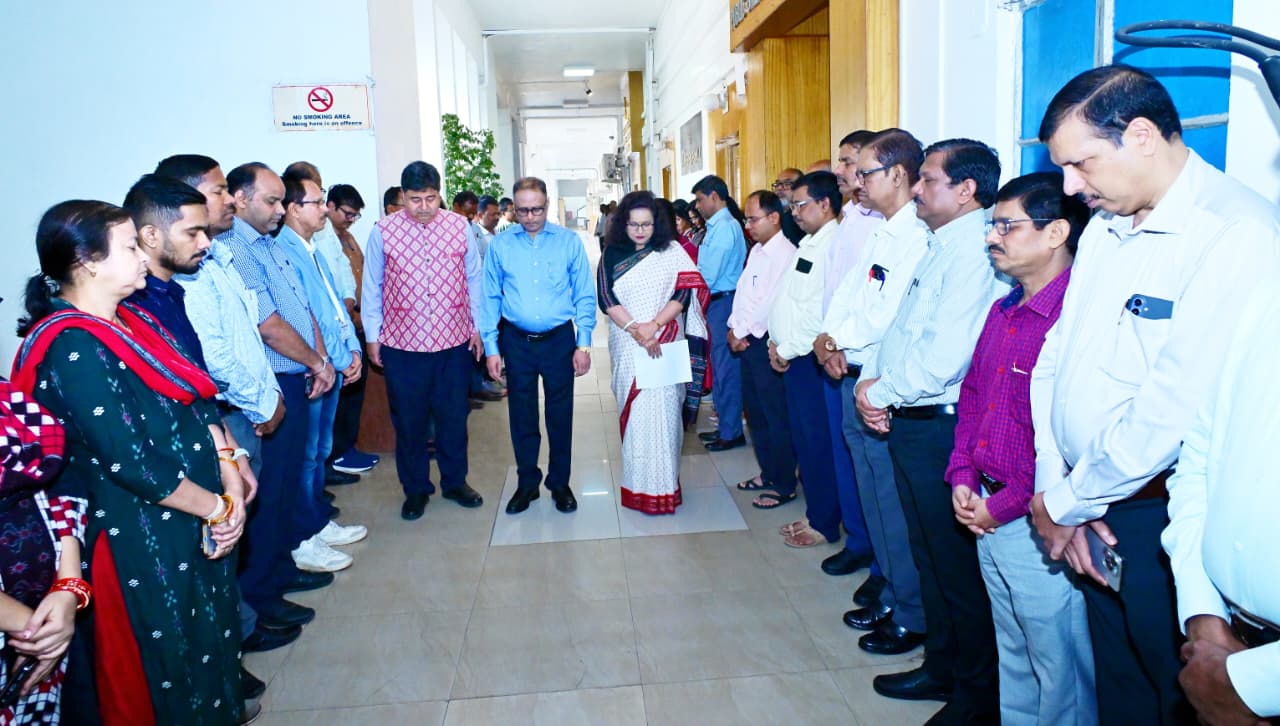 To mark this significant day, a two-minute silence was observed at precisely 11:00 AM. The gathering was led by Chief Secretary Smt. Anu Garg, alongside Development Commissioner and Additional Chief Secretary Shri Deoranjan Kumar Singh, and Additional Chief Secretary of the General Administration and Public Grievance Department Shri Surendra Kumar, Principal Secretary Finance, Shri Sanjeeb Kumar Mishra, other Principal Secretaries, officials, and staff members from different departments also joined the congregation to pay their respects.