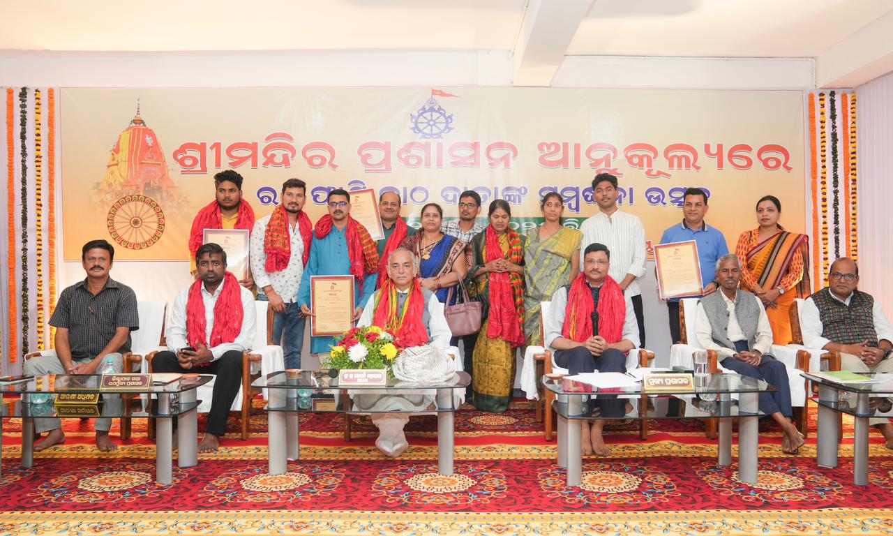 Puri: In a divine gesture of gratitude toward the guardians of sacred tradition, the Shree Jagannatha Temple Administration (SJTA) today honored the selfless devotees who offered the rare Phasi wood required for the construction of the holy chariots of the Chaturdha Murti. The ceremony, steeped in spiritual fervor, took place at the Srimandir Headquarters in the holy city of Puri.